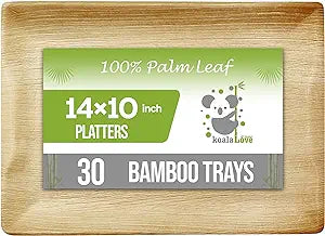 KoalaLove's Palm Leaf Platters are the perfect eco-friendly alternative to plastic tableware. Made from 100% compostable and biodegradable material, these platters are designed for an effortless cleanup. With a large size of 14"x10" and a set of 30 platters, they are ideal for any party.